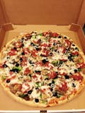 Large Pie Topped with cheese, bacon, ham, sausage, meatball and pepperoni.